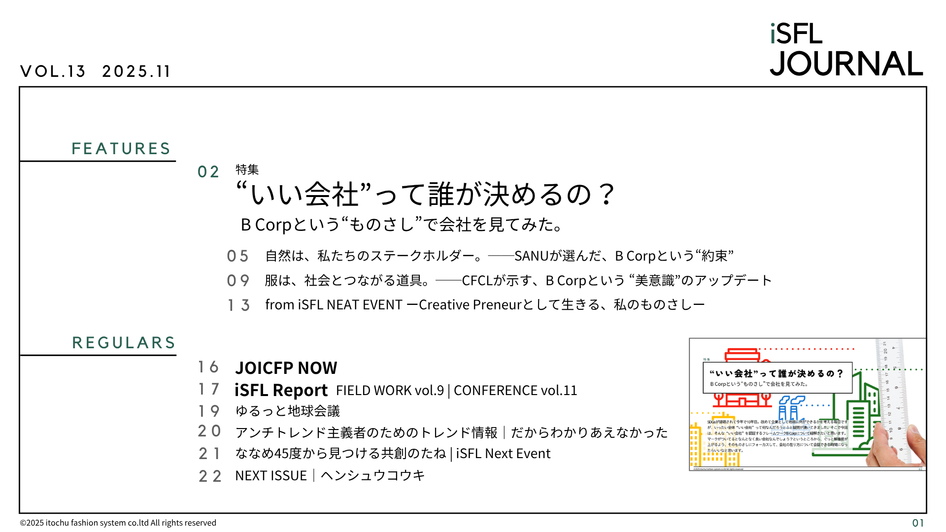 1年に6回、隔月の終わりごろにPDF形式で発行しているiSFLジャーナル。毎回ひとつテーマを決め、関連したサステナブルな情報をお伝えするべく